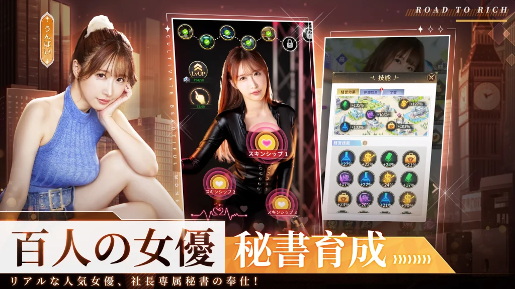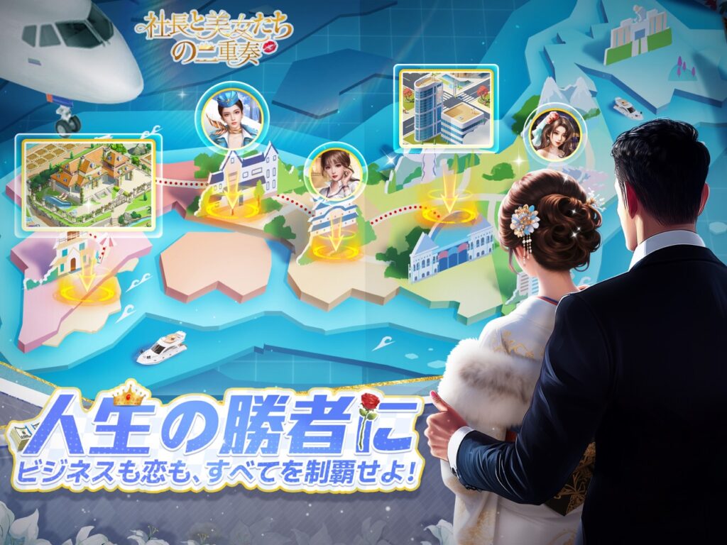 「社長になって美女に囲まれる」という夢をスマホで叶えられるゲーム、まさに成り上がり感とときめきが同時に楽しめます!